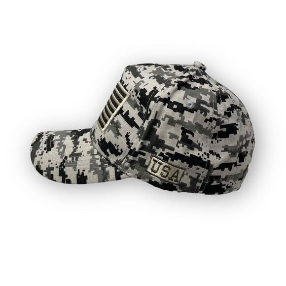 August Sportswear Hat Cap Gray Digital Camo Adjustable USA Flag Patch OSFM