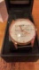 Elegant August Steiner watch with a rose gold case and black strap. Features a white dial with diamond accents.