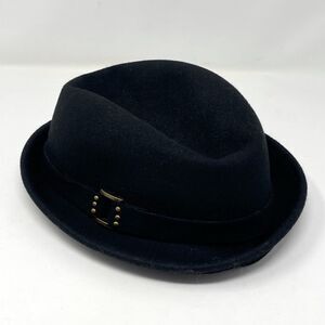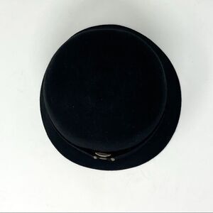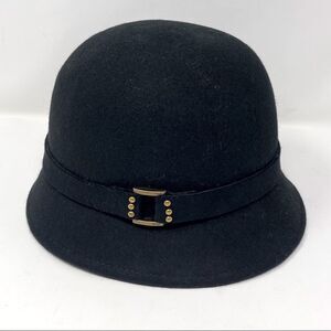 August 100% Wool Black Felt CLOCHE or FEDORA Style Brass Buckle