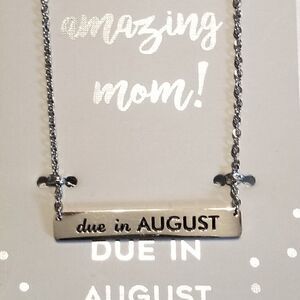 New Due in August Engraved Stainless Steel Necklace. Adjustable 16"- 22" length. BRAND NEW, only taken out for the photos.