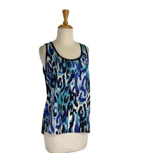 August Silk M Blue Leopard Tank Top Going Out Art To Wear Graphic Print Whimsy