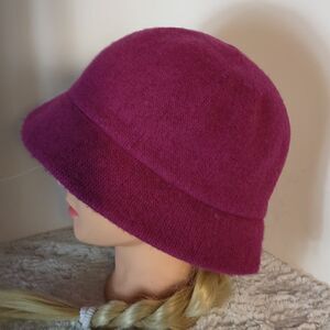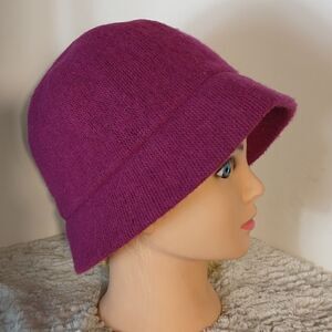 This plum colored knit August women's wool bucket hat is a one size fits most. 56% wool 30% olefin 14% nylon. In great preloved condition. All offers are welcome.