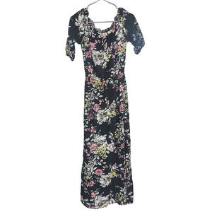 Auguste Black Floral Maxi Dress with High Side Slit - 6/8