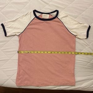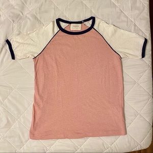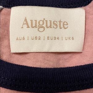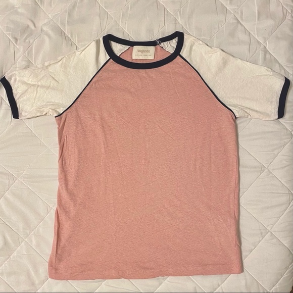 Auguste the Label is an Australian boutique womenswear label. Charlie ringer T-shirt in dusty pink, white, and navy, was purchased from Revolve and is size US 2 // US XS. Made of 55% hemp, 45% organic cotton. Top has been worn a single time and is in excellent condition
