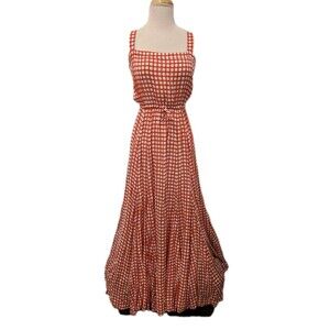 Auguste The Label Orange Gingham Paneled Maxi Dress sz 4 Prairie Cottagecore