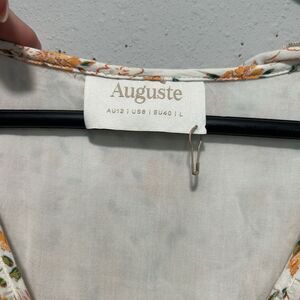 Auguste Womens Dress 8 Wrap Dress Floral Flutter Sleeve Empire Waist Swiss Dot