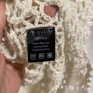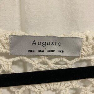 Chic cream crochet short sleeve blouse by Auguste the Label in U.S. Size 2. Perfect for casual outings or bohemian-inspired looks. Good condition with detailed measurements in pictures.