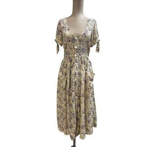 Auguste Lola Yellow Floral Button Front Meadow Midi Dress size 2