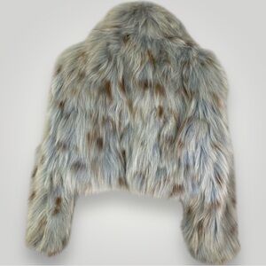 The natural fur variations offer a unique color palette of soft blues subtle tawny undertones, reminiscent of classic 1980s glamour with a contemporary twist.