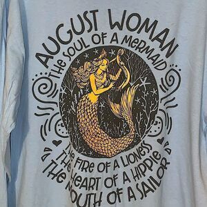 Sky blue August birth month tee Gold mermaid on front New without tags #Virgo #zodiac