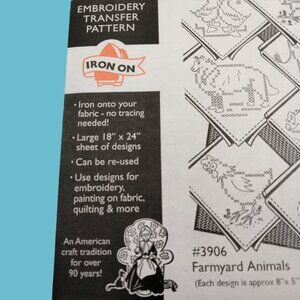 Aunt Marthas Farmyard Animals Embroidery Transfer Pattern 3906 Iron On Reusable