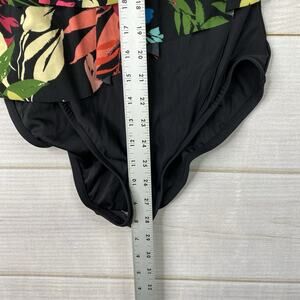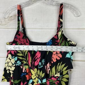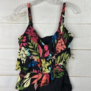 Auqa Green One Piece Swimsuit Womens L Black Floral Ruffled Strappy Beach NEW