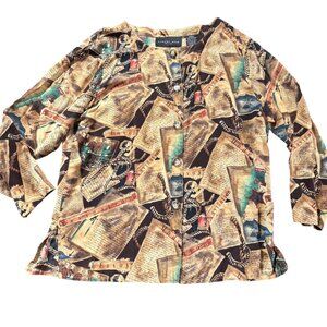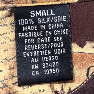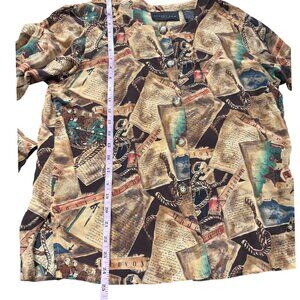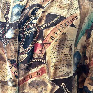 Auqust Silk Petites Vintage Navigation theme Long Sleeve Button-up Blouse Sz PS