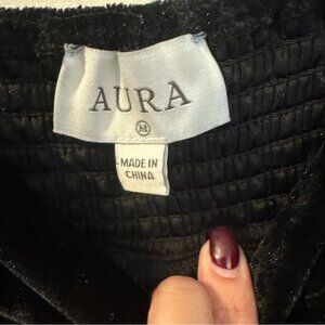 Aura Black Velvet Regency Gothic Babydoll Mini Dress Size Medium