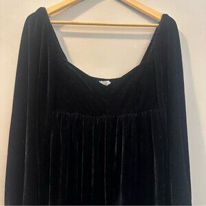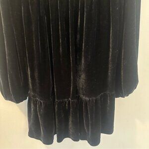 Black Velvet Long Sleeve Babydoll Mini Dress Size Medium