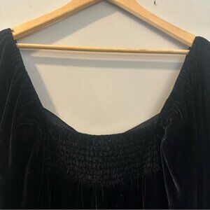 This black velvet babydoll mini dress delivers a soft, romantic look with a flattering sweetheart neckline, long balloon sleeves, and an easy flowy silhouette. The plush velvet fabric gives it a luxe Old Hollywood feel while still being comfortable and wearable for dinners, holidays, or special events. Excellent used condition — looks beautiful and well kept.