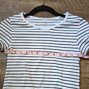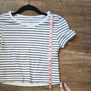 Aura Black and White Striped Fitted Crop T-Shirt Size Junior M/L