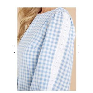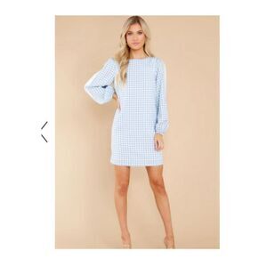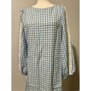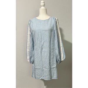 Aura Blue Gingham long sleeve mini dress M