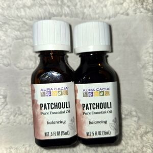 Set of two Aura Cacia Patchouli Pure Essential Oils. Balancing and aromatic.