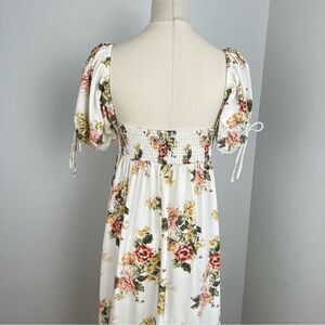Aura Cream Floral Midi Dress Puff Sleeve Cottage Romantic Milkmaid Regency Sz S