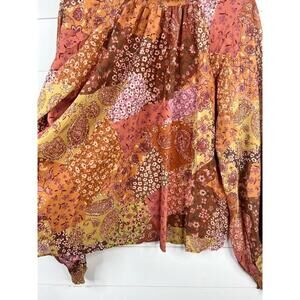 Aura Floral Paisley Patchwork Long Sleeve Peasant Blouse Size L Tie Back