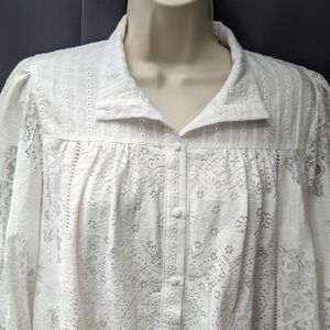 This tunic is new with tags. It is a fully lined lace and eyelet material. Has loops for a belt, not included. It is a loose oversized fit. Please see photos for details.
