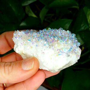 Elevate your space with the powerful energy of this eye catching aura quartz crystal cluster! Measuring 2x2x1.5", this beautiful cluster is perfect for adding a touch of magic to your garden, home, or office.