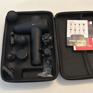 Aura Revive Deep Tissue Massage Gun w 8 different attachments and Case Like New