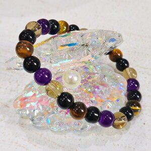 Aura Shield ✦ Tigers Eye Amethyst Hematite Bracelet ✦ 8mm Crystal Bead Stretch