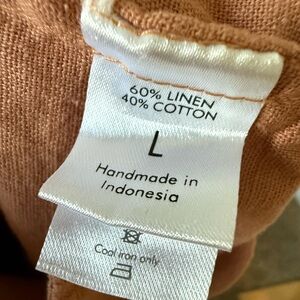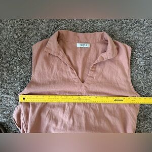 Aura The Label Linen Blend Midi Dress Women’s Large Pink Peach V-neck Collared