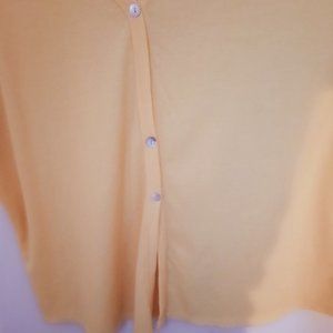 Yellow faux button front blouse with all-over waffle texture by the brand Aura. Split hem feature at the bottom with a V-neckline. Oversized fit.