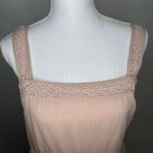Aura boho tiered crochet lace blush color sleeveless maxi sundress size L