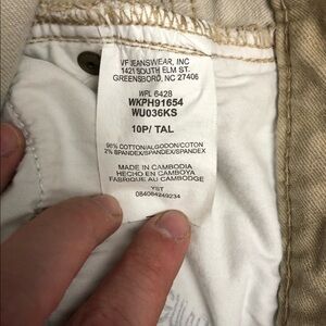 Aura from the Woman at Wrangler Women’s Tan Short Rise Jeans Size 10P
