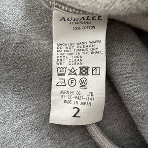 A soft and voluminous sweatshirt from Auralee. We love the half zip with the round zipper pull detail that is both cute and functional. The inside is incredibly plush and soft to the touch, while the outside has a bouncy texture. Other details include a hood with drawstrings, ribbed hem and cuffs, and a relaxed fit.