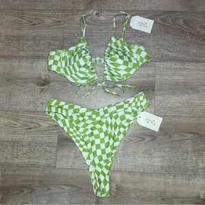 Aurelle Riza green checkered bikini set, brand new with tags.