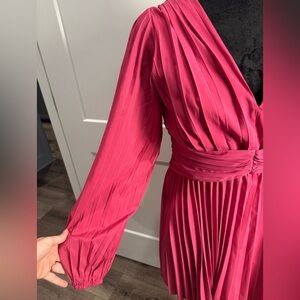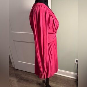 Aureta X Anthropologie Pleated Long-Sleeve V-Neck Dress lined