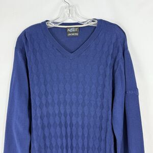 Aureus Fine Silk Blend Blue Silk/Cotton V Neck Sweater XL