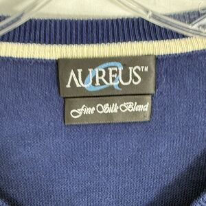 Aureus Fine Silk Blend Navy Blue Silk/Cotton V Neck Sweater XL