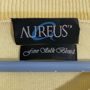 Aureus Light Yellow V neck silk blend sweater with diamond pattern size Large