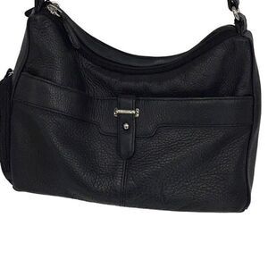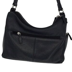 Aurielle Womens Leather Double Top Zippered Compartment Shoulder Handbag Black