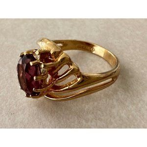 Aurora 18kt GE yellow gold electroplated purple clear cubic zirconia ring