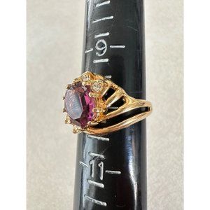 Excellent condition, no flaws. Center oval cut purple gemstone is accented with smaller clear round cut CZs.