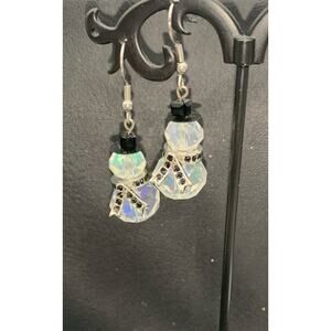 Aurora Borealis AB Iridescent Crystal Dangle Snowman Earrings