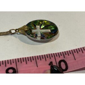 This elegant jewelry set features a stunning aurora borealis cross pendant necklace paired with matching earrings. The intricate design captures light beautifully, creating a shimmering effect that adds sophistication to any style. Ideal for those who appreciate unique and eye-catching accessories.