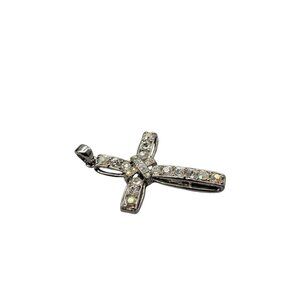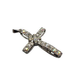 Aurora Borealis Cross Pendant Silver Tone Lots of Sparkle & Color