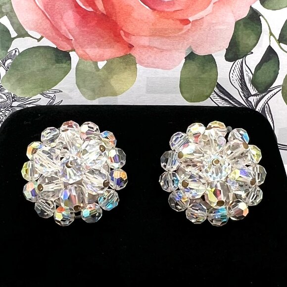 Unsigned 1960's AB Clear Crystal CLIP On Earrings