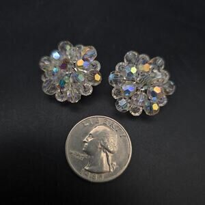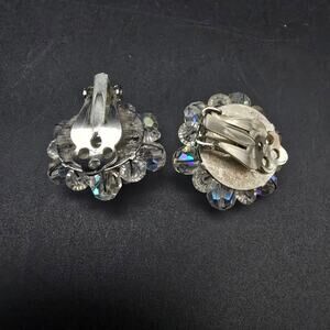 These vintage clip on earrings feature aurora borealis glass beads in a 1" D cluster