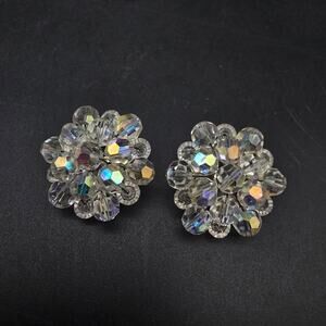 Aurora Borealis Glass Beaded Earrings Clip On Vintage Jewelry