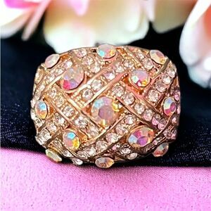 Aurora Borealis Rhinestone Gold Tone Statement Ring Size 9 NWT