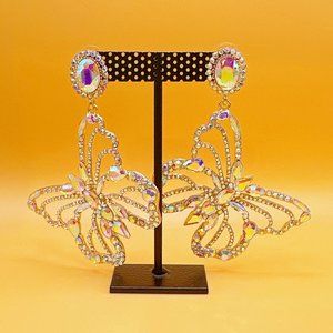 Aurora Borealis Rhinestone Large Butterfly Earring